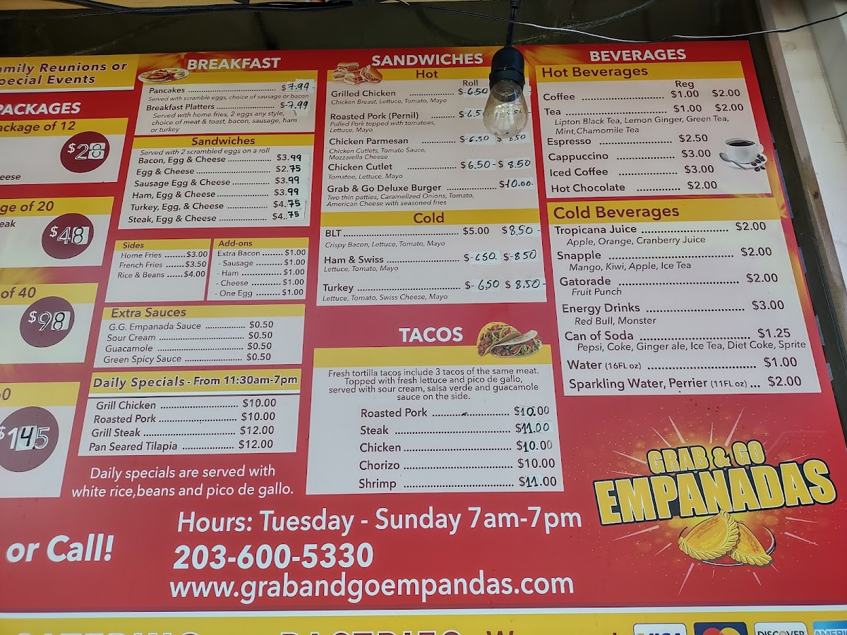 Welcome to Grab and Go Empanadas, a hidden gem located at 20 Wheeler St in Hamden, CT. This vibrant eatery specializes in hand-crafted empanadas, offering a delightful array of flavors to satisfy every craving. From succulent chicken and beef to scrumptious shrimp and veggie options, each empanada is a pocket of joy filled with fresh ingredients.